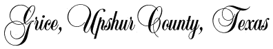 GRICE, TEXAS Grice, Texas is located at the junction of Farm roads 852 and 1002, twelve miles west of Gilmer in western Upshur County. It was established in the late 1880s or early 1890s near a heavily wooded area known as the "Big Woods". (My grandparent's land adjoined the "Big Woods".) The community was originally called Hamil's Chapel, for a small Methodist Church (where Baptist also gathered) that was organized not long after the Civil War. Around 1890, John J. GRICE opened a store and post office there. The post office became known as Grice, but the church continued for several years to be known as Hamil's Chapel. Old Grice by late 1890's used to be a small town-like community with plank sidewalks, school, barber shop, saw mill, cotton gin, lumber plainer, post office, a general store with the Woodsman Hall atop, saloon, and two churches, Hamil's Chapel Methodist (also used by the Baptist). My great, great grandfather, Abe CROSS, established his blacksmith shop where he also received requests to pull teeth. The small town's business district was located south of where the cemetery and Antioch Baptist Church still stand. The road of "Old Grice" turns right past the church & dead ends into FM 1002 - Abe CROSS' blacksmith shop sat on the left hand corner where this road dead ends. If you failed to turn left or right on FM 1002 you would drive into my late aunt Bernice CROSS POOLE's house. Grice not only had its Christian residents, but also contained some unruly sorts. In fact, Abe CROSS, who moved with his family to Upshur Co (migrating from TN) in the late 1890's, almost passed up on living in Grice due to his first visit and recalling "drunken" men lying about on the sidewalks. One of the earlier settlers that moved to Grice, did so to start a new life. He had previously been running with his cousin's "gang" ... his cousin was none other than Jesse JAMES. Shortly after he arrived in Grice the "law" came around asking some in the community if there had been any "newcomers". It happened that the ones asked, knew this "settler" and liked him, so they told the "law", "no". The "settler" changed his name, began a new life, became a law abiding citizen and raised a large family - some of his descendant's still live in and around Grice today, however, I am not sure if they know anything of this, so for that reason I have left out his name. My great grandfather, Loyd DACUS, having been recently widowed, moved his family from Lookout Mountain in GA to Ft Worth, Texas where he worked lighting the "street lamps" and then "putting them out" in the mornings. He later moved to Grice, abt 1911, where he bought the mill, gin, lumber plainer, and general store. He later moved to Marshall and opened a furniture factory and operated a traveling theater where he showed movies. He later returned to Grice where he lived out the remainder of his life. The Grice school began operating before 1900, and by 1907 it had an enrollment of 126. After the mid 1900's Grice began to decline. The Marshall and East Texas Railway bypassed the town, and many community residents moved away. The Grice post office closed in 1905. By the mid-1930s the community had a school, two churches, and two or three stores. Later Grice School along with Rhonesboro - Rosewood - Little Mound - Latch - Soules Chappell - Enon - Peach - Honey Creek & others formed what is now know as Harmony School District. This consolidation caused quite an uproar in the Communities and Grice was no different. The consolidation was met with much opposition from all parties concerned. In the 1950's thru the mid 1970's Grice consisted of a small grocery store complete with two gas pumps, Antioch Baptist Church and Grice Cemetery. The grocery store which was ran by my grandparents, Lamon "Mutch" CROSS (1900-1974) & Annie DACUS CROSS (1903-1972) was later ran by Glen Royce CROSS after my grandmother became ill. The store later burned & all that remains is the old "feed house" that sits on an empty lot at the cross roads of 852 & Giraffe Rd - that leads to the church and cemetery. GRICE CEMETERY Grice Cemetery is located in the community of Grice, Upshur County, Texas. The financial operation of the cemetery is made possible by contributions and the purchase of plots. Situated across the road (and a little North of) from Antioch Baptist Church, the cemetery is well kept and maintained. Buried are both individuals that have no other family buried there, but in most cases, there are generations of families. Also situated among marked graves are those whose only monument is old native rocks, with any engraving or memories of who lies beneath them long eroded with time. Established around 1864. Tobe DAVIS (1859-1932), N.H. MORRIS and W. SCOTT (1895-1963) & Livie BRICE (1899-1986) were the first recorded to donate land for the cemetery. Although clearly the cemetery was established around 1864 when Tobe was about 12 years old. Tobe was the eldest of the 3 donors and there is no grave found for N.H. MORRIS. Clearly Tobe DAVIS did not donate land until he was at least 21-years old, which would have been after 1880, with land records placing him in ownership of surrounding lands circa 1895. W. SCOTT & his wife, Livie did not donate land until W. Scott BRICE was at least 21-years old, which would have been after 1915. Not having the age of N.H. MORRIS, it cannot be determined when he donated land. The original land grantor is unknown to me at this time. With the original "recorded" land donated by Tobe DAVIS and later by N.H. MORRIS, Scott & Livie BRICE donating more land the cemetery became part of the community. In 1950, one-acre was purchased for the cemetery from Herman and Susie DAVIDSON GIBSON. In 1980, an acre was purchased from Helen Norma GIBSON SCHWARZ. As of 2001, the cemetery was approximately 3-1/2 acres in size. It is located on Giraffe Road. READ ON! The following was furnished me by Milton Dacus. It not only contains information on the cemetery but al